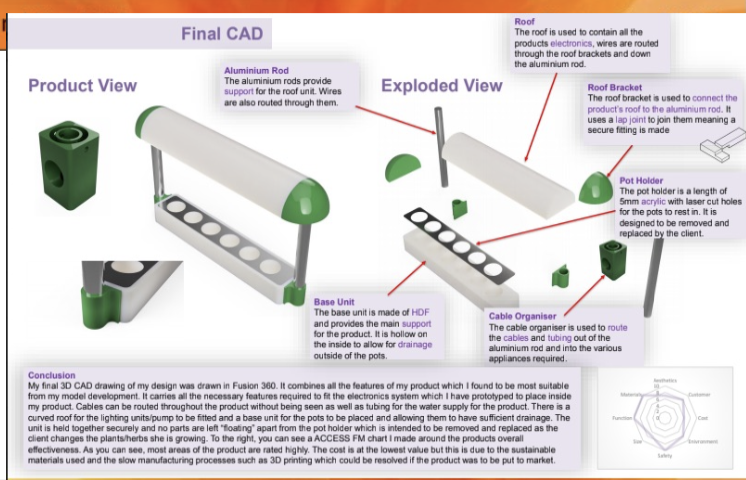 My DT GCSE coursework was based around designing a modern compact plant holder that could potentially integrate the same circuitry as my 'Biology Plant Monitor' project.