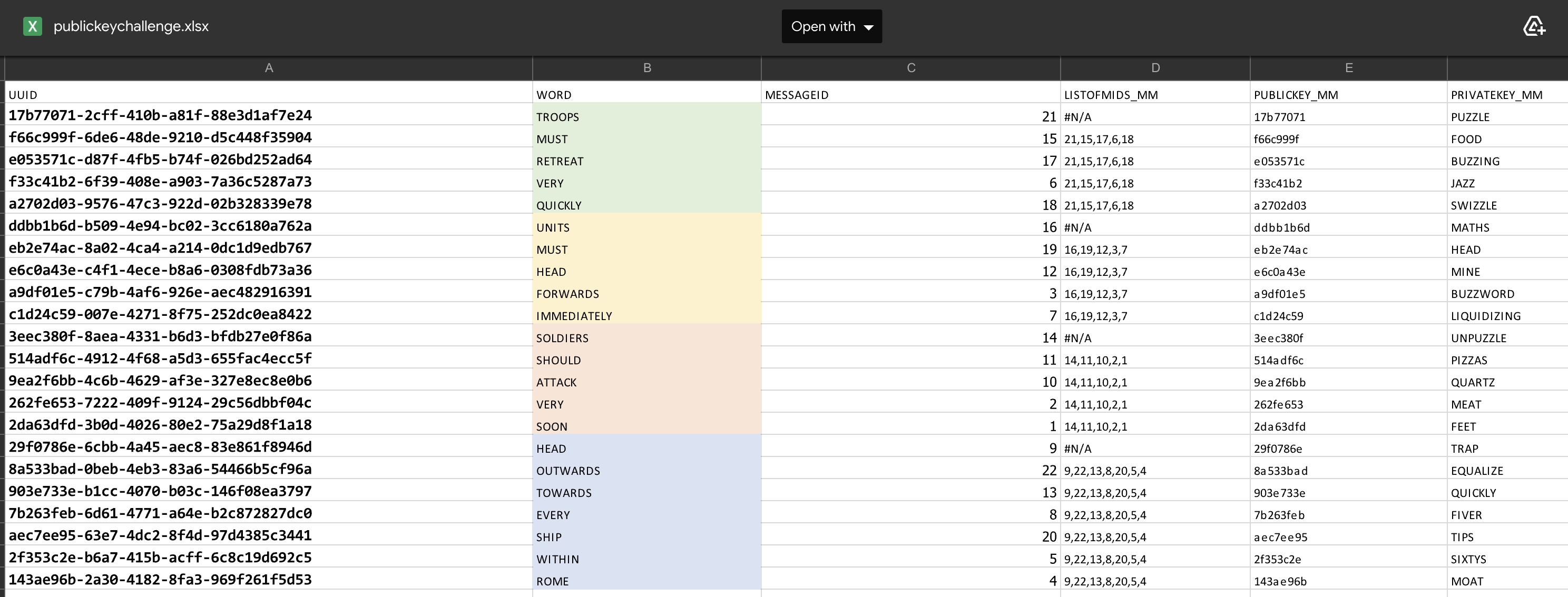 To make the session a bit more engaging, I setup several spreadsheets that I used to mail merge individual workbooks so each one was unique. This led to an activity on public key crytography.